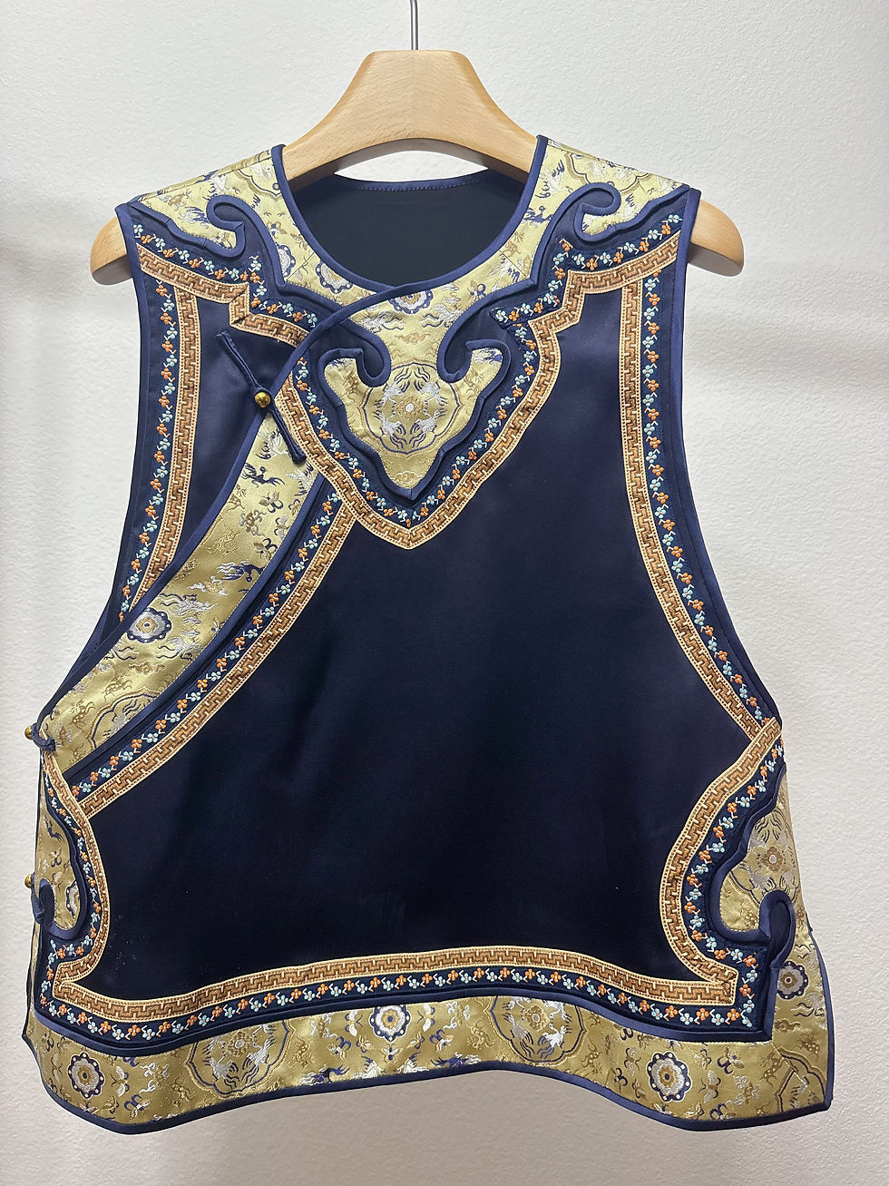 Navy Traditional Retro Xiangyunsha Silk Vest